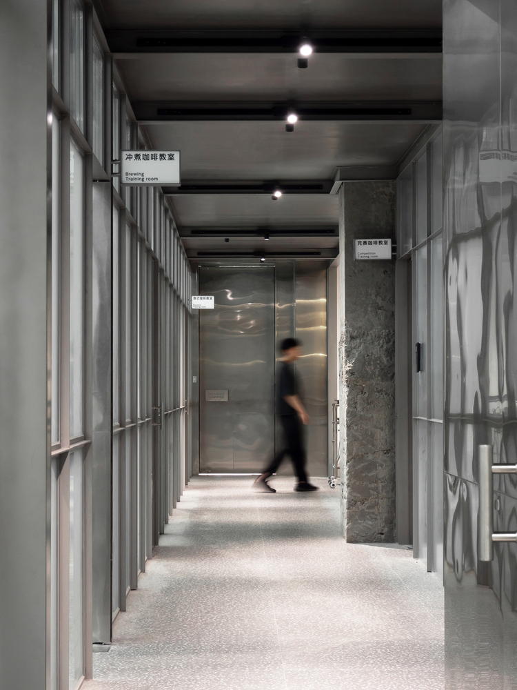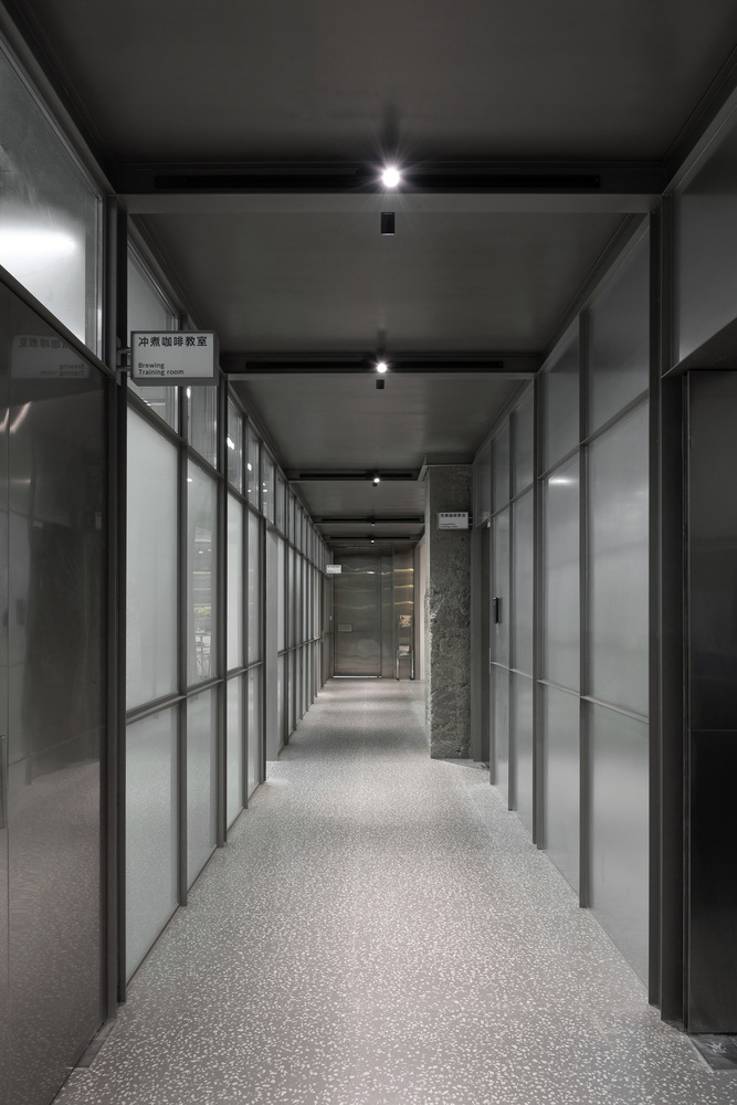 The client’s original request was to completely separate the three main functions, making them independent of each other. To meet the functional requirements while reducing the sense of isolation, we aimed to create boundaries that were flexible and layered. Therefore, we placed a semi-transparent corridor between the three functional zones. This not only separates the spaces, naturally becoming a boundary, but also links the three areas together, forming a buffer zone. As a result, although the teaching area, office area, and coffee shop are separated in terms of accessibility, they appear as a cohesive whole from a visual perspective.