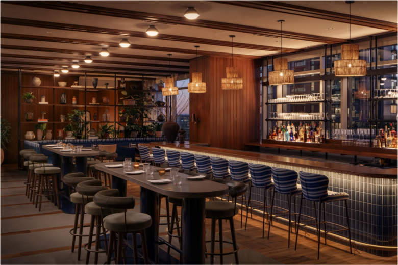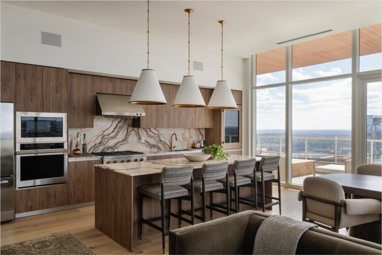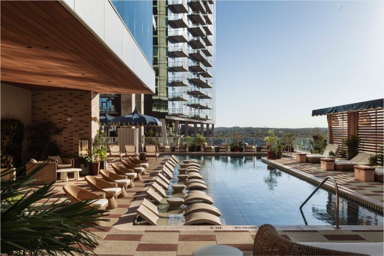 Turkish rugs and lush plants are paired with Italian cabinetry, and the amenities and services which include King-size beds, a fully equipped kitchen with appliances, glassware and tableware, a smart Roku TV, a washer and dryer, complimentary WiFi, and weekly housekeeping. And as ‘real living’ equals ‘good living’ at ROOST Rainy, the hospitality concept is paired with a string of facilities, provided by Paseo, that make a stay here even more alluring, such as a pool, spa, and fitness centre with workout studios, along with a selection of elevated onsite food and beverage concepts. The latter includes Daydreamer Coffee, a friendly ground floor café offering a variety of coffee concoctions, seasonal drinks, pastries, and a range of curated. Up on the twelfth floor, a pool deck awaits, overlooking Lady Bird Lake with bar service and cabanas, while also situated here is Amaya, a casual rooftop dining destination serving modern Eastern Mediterranean-inspired cuisine with a focus on shareable mezze and light fare. © superfuture
