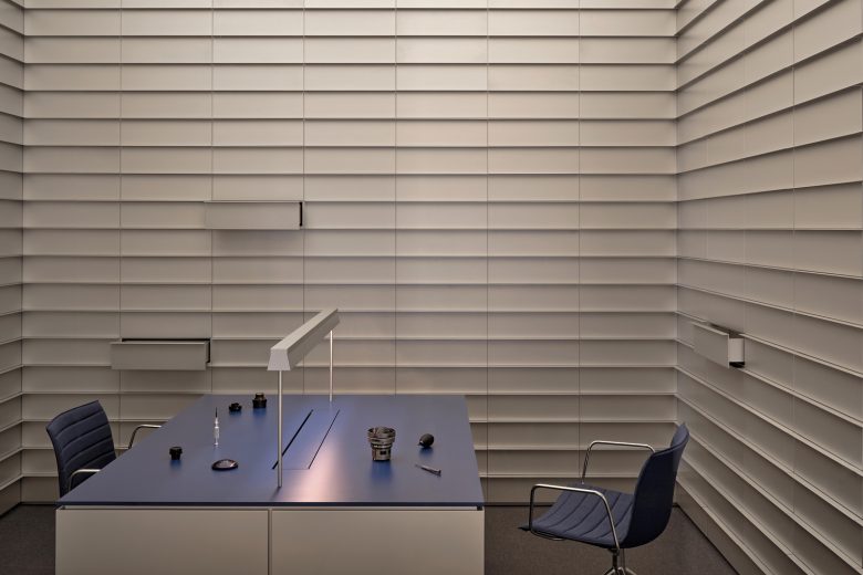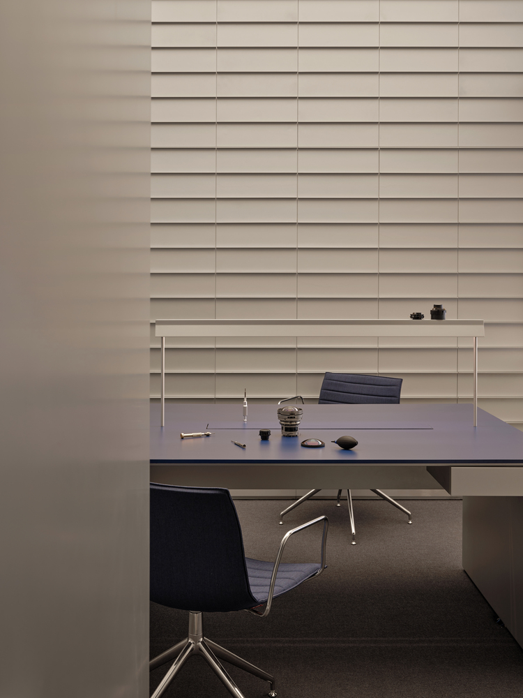 Inside the exhibition hall, Kvadrat Acoustics was applied to the walls, integrating form, function, and acoustic performance to create wide, seamless surfaces and an exceptionally quiet atmosphere. This calm precision responds to SIGMA’s character as a maker of refined optical instruments, and reinforces “The Ways of Crafting” as a pursuit of rigor and craftsmanship.