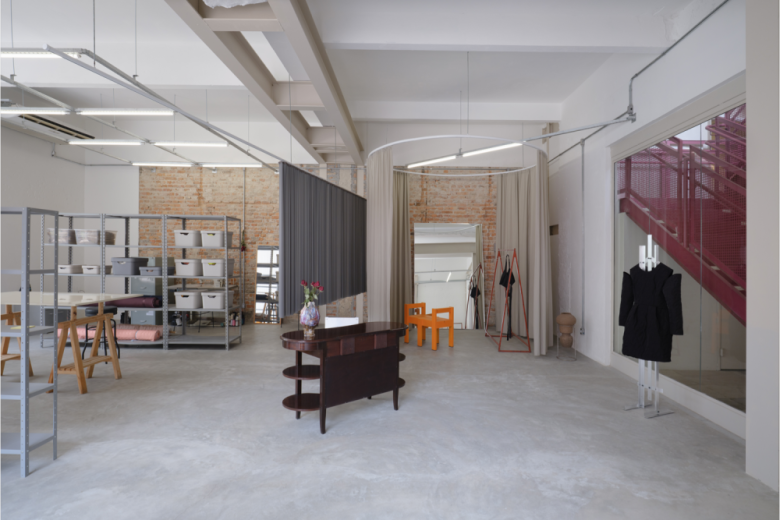 Founded in 2017 by São Paulo-based designer Marina Dalgalarrondo, womenswear brand ÃO has carved a name for itself in Brazil‘s fast-evolving fashion landscape with quirky silhouettes that emphasise creativity and redefine female shapes by blurring the lines between fashion and visual arts. Taking its operations to a new level, ÃO has recently inaugurated a new retail space and workshop in Pinheiros, a downtown area that has become increasingly fashionable, and gentrified as such, in the past few years. The company has secured a lofty 90 sqm. (969 sq.ft.) unit at LAPI, short for Largo de Pinheiros, an urban redevelopment project which encompasses a block of low-rise buildings which aims to be the area’s new hub for shopping, dining out and cultural events.