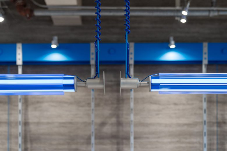 Cultural implantation elevates the space. Contrast materials fit outdoor style; brand blue signifies professionalism, reinforced by props/lighting for recall.
