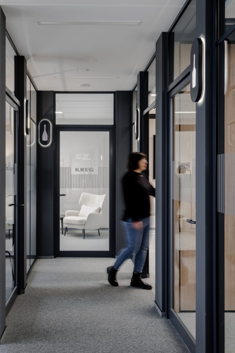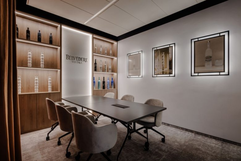 The main design theme is the distinctive shapes of the bottles, representing the Moët Hennessy brand portfolio. Each conference room and office has been named and styled according to a specific brand belonging to the group.