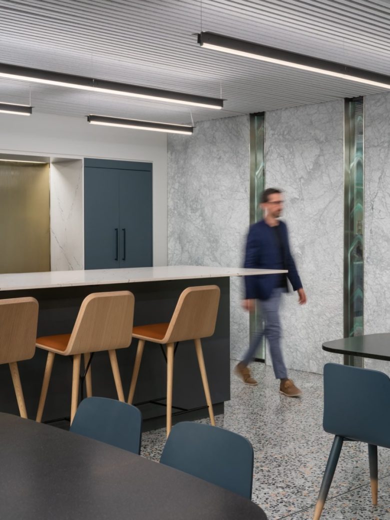 OTJ Architects crafted a global engineering firm’s offices in Washington DC to blend contemporary hospitality with the organization’s rich heritage, creating a dynamic executive environment that celebrates its legacy while fostering innovation.