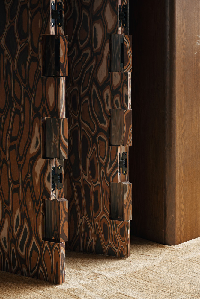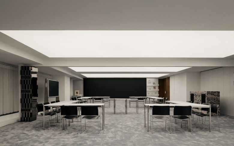 Construction emphasized precision craftsmanship and layered material expression. The project integrates printed tiles, stained timber, stainless steel, glass, resin grid ceilings, and custom-designed lighting and furniture systems. Materials were selected not only for durability but for their ability to articulate different atmospheres across programs. Techniques included custom fabrication of flexible furniture, integration of sculptural hardware such as carpet-wrapped handles and bespoke knobs, and the use of modular components that support reconfiguration. 3D-printed elements were introduced to achieve complex forms and bespoke detailing while maintaining production efficiency.