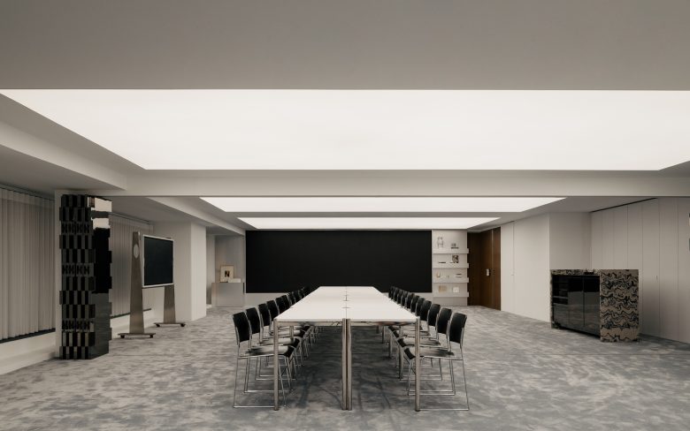 Spatially, the office is organized as a vertically layered environment designed to support both community and individuality. The configuration distributes key programs — dual pantries, library, training hall, photo studio, meditation room, meeting suites, and open work zones — across interconnected levels to encourage movement and interaction. Circulation operates as a connective spine, while transitional zones such as lounges and shared hubs function as social catalysts. Repetition of material motifs and wood detailing establishes visual continuity across diverse functions, ensuring coherence despite programmatic variety. This approach enables the workplace to shift seamlessly between everyday operations and event-based use.