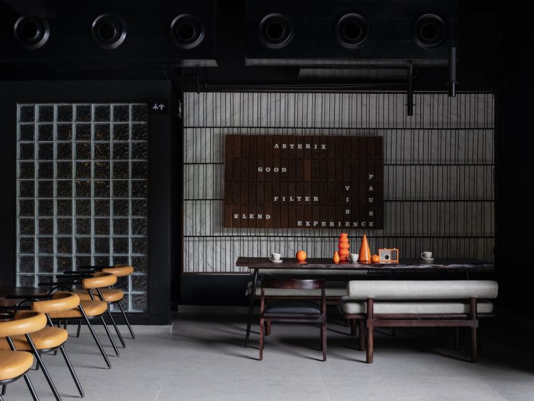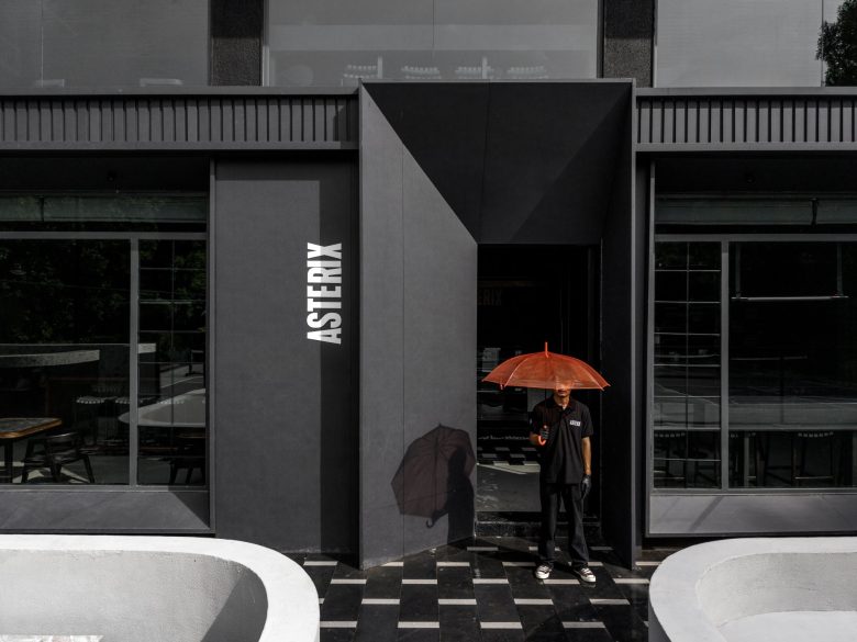 Located in Adalaj, Gujarat, Asterix Café by UrbanNest Design Studio reimagines the contemporary café as a bold, experience-driven destination. Moving away from the typical pastel-toned coffee environment, the design embraces a striking monochromatic palette where blacks and greys are layered with raw textures to create depth, drama, and atmosphere.