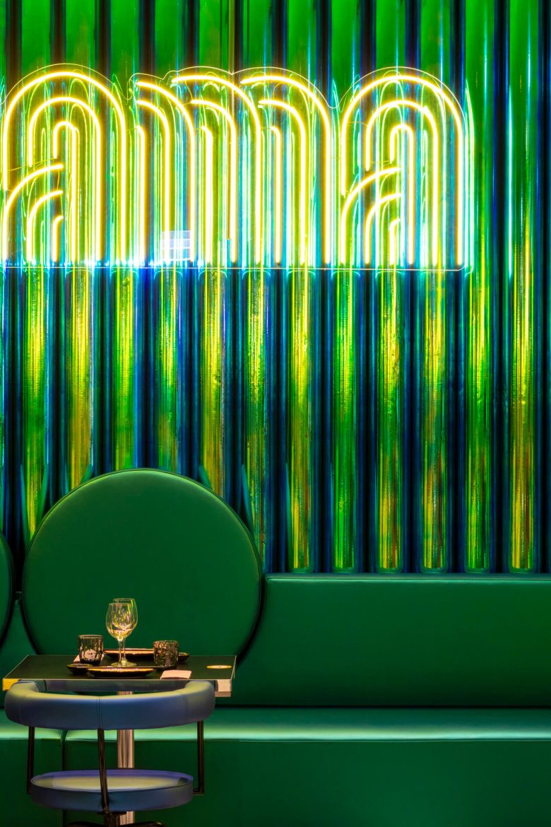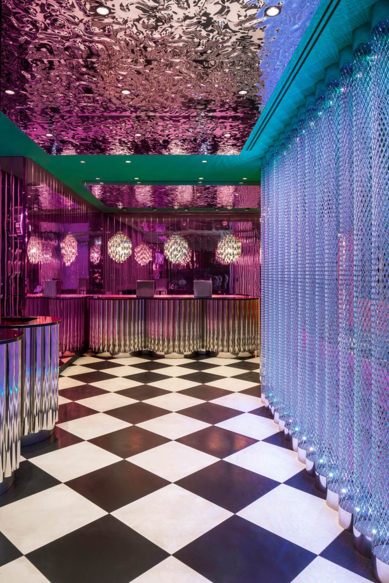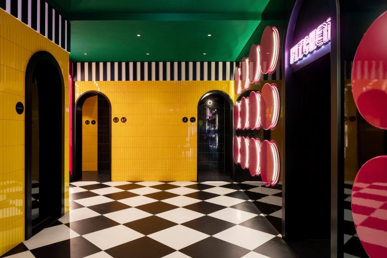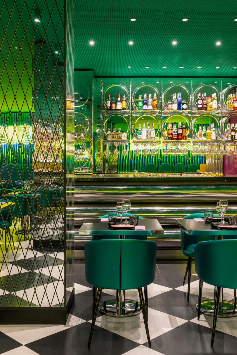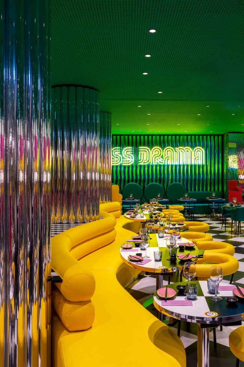 The concept stems from the desire to redefine the sushi restaurant format, experimenting with unconventional materials, reflective surfaces, and lighting solutions integrated into the architecture. Geometric graphics, iconic patterns, and saturated colors create an immersive and highly distinctive environment, where the experience of space becomes central.