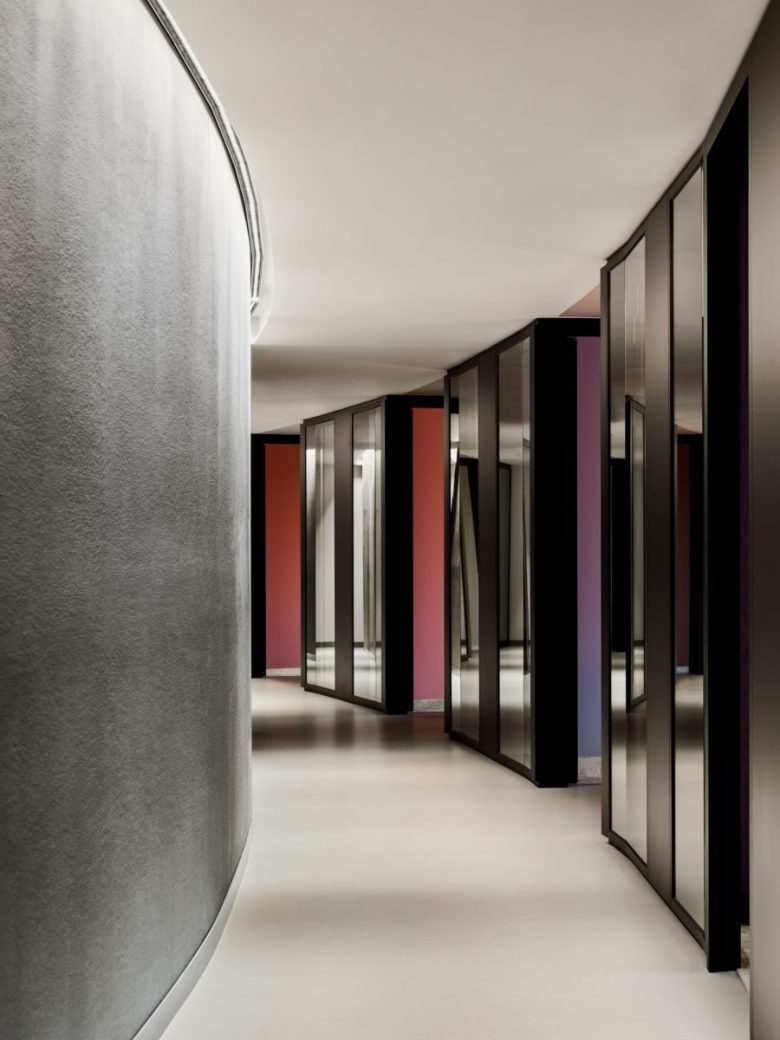 The design forms part of the comprehensive transformation of this iconic site, which has been undergoing a phase of reorientation since around 2021 towards greater openness, humanity and a forward-looking outlook. Within this context, Kinzo has developed a working environment that translates the aspirations of a new work culture into spatial experience. The result is a set-ting defined by a sensitive handling of colour, light and materiality. Spaces that support concentration while simultaneously conveying a sense of lightness. Subtle nuances, fine transitions and a clear spatial order shape the atmosphere: present, focused and calm.