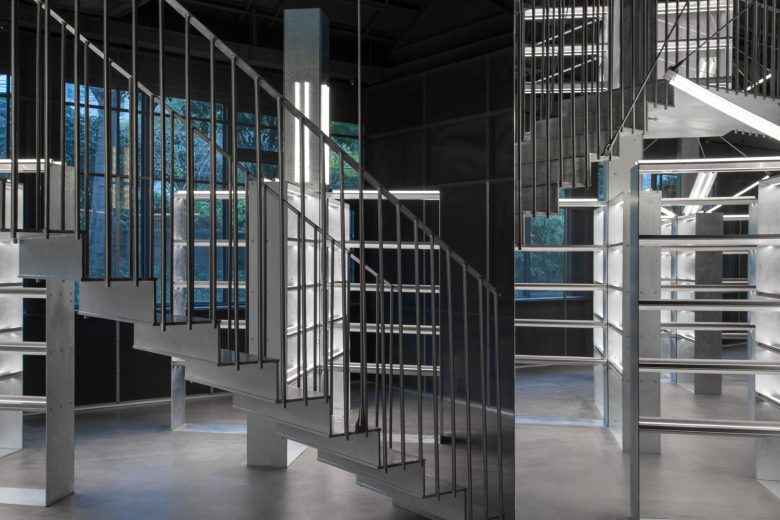 Metals are used a lot in the retail space, including the stainless steel plates, the hot-dip galvanized finishes, as well as the metal mesh. The preservation of distinct textures on different metal surfaces embodies diversity and unity.