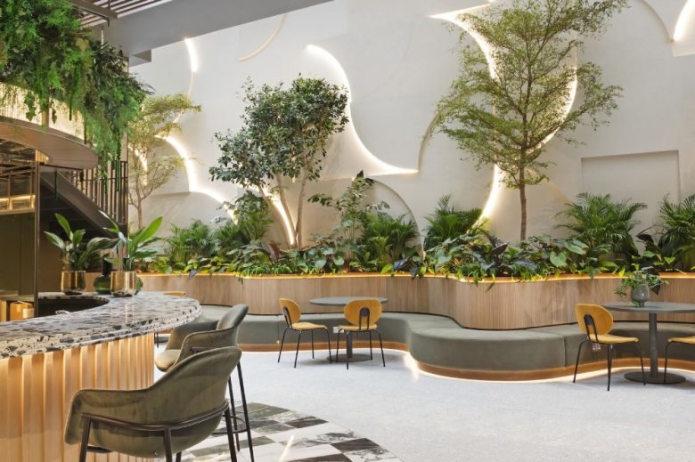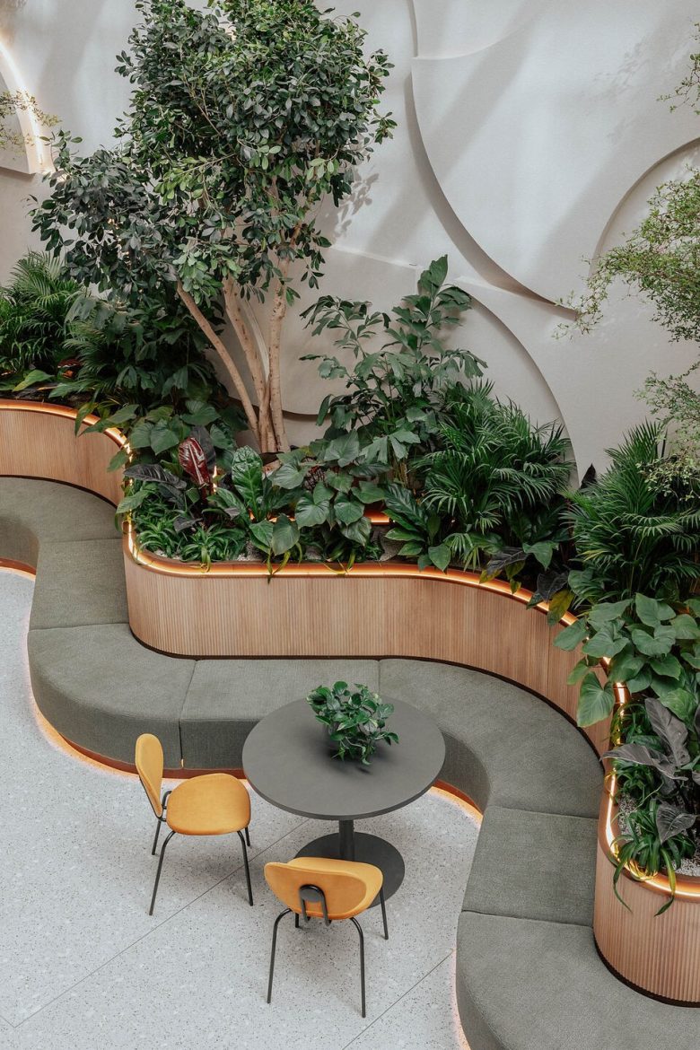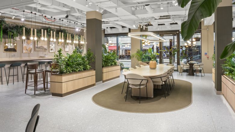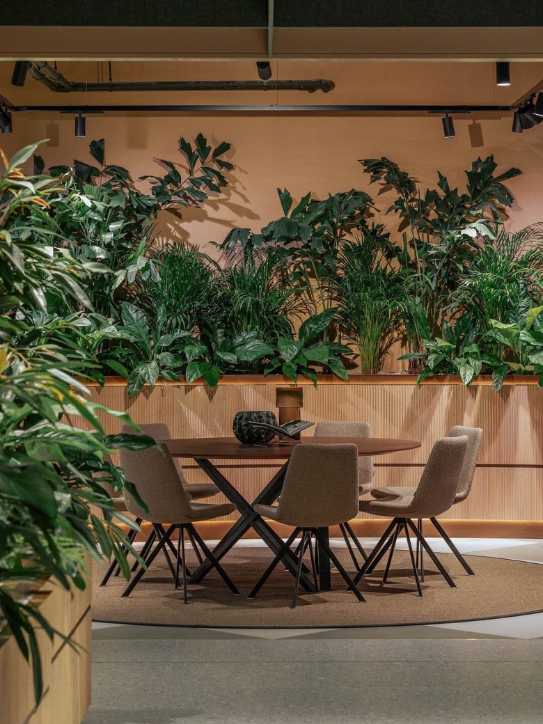 Bespoke modular furniture enables disassembly and relocation, while durable laminate finishes in high-traffic areas extend service life. Environmental Product Declarations provide lifecycle impact transparency.