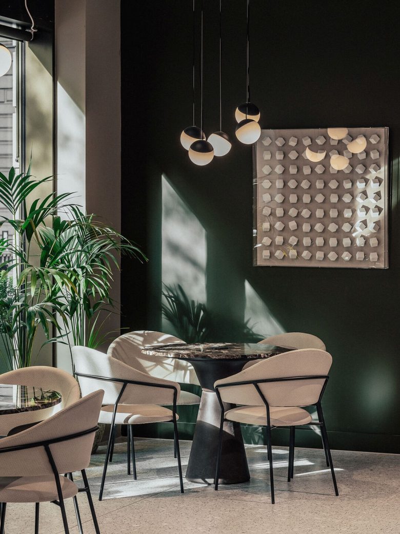 The project reduces carbon emissions through building reuse, material selection, energy efficiency, and carbon offsetting. The use of FSC-certified timber, volcanic ash countertops, Framery phonebooths, and recycled materials reduce the carbon footprint of material sourcing, while local craftsmanship reduces transportation emissions. Energy-efficient systems, including smart technology for lighting, heating, and cooling, reduce operational emissions.
