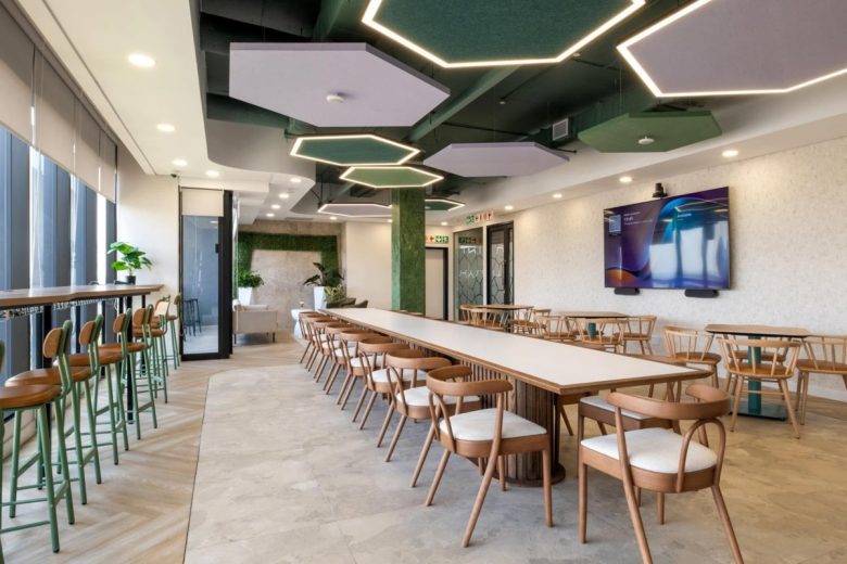 Furniture was specified and delivered by Design Colab, with a focus on ergonomics, durability and long-term flexibility. The workspace includes Design Colab’s locally designed and manufactured height-adjustable workstation, The Motion, supporting individual comfort within the non-dedicated desk environment. Modular boardroom tables accommodate both formal meetings and larger town hall sessions, allowing the space to scale as required.