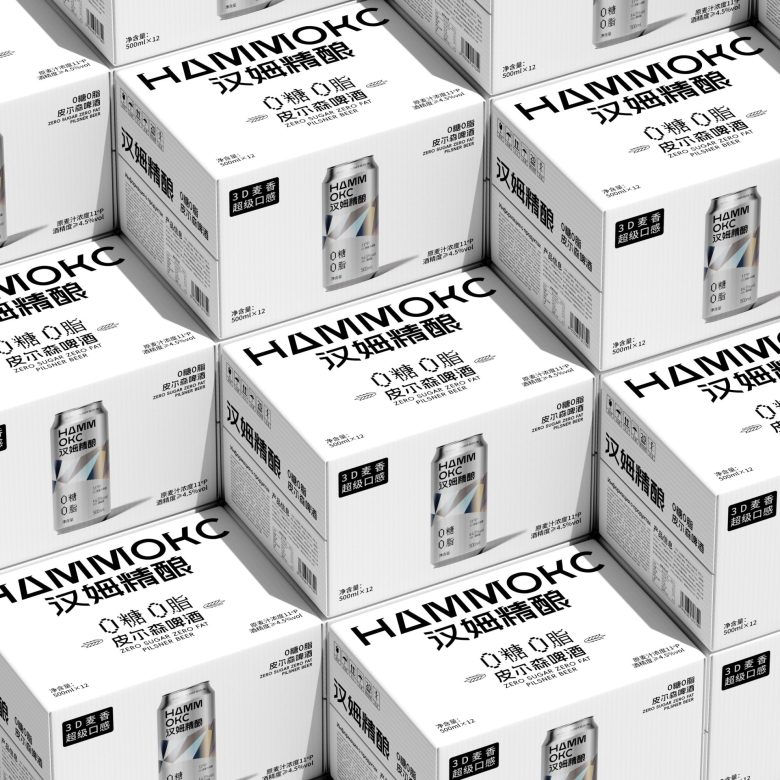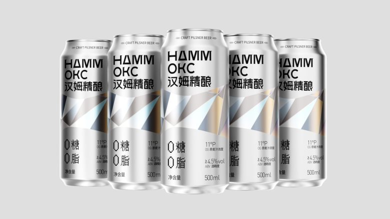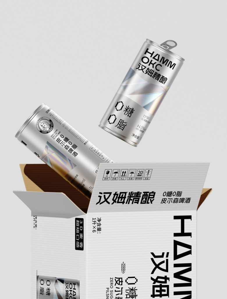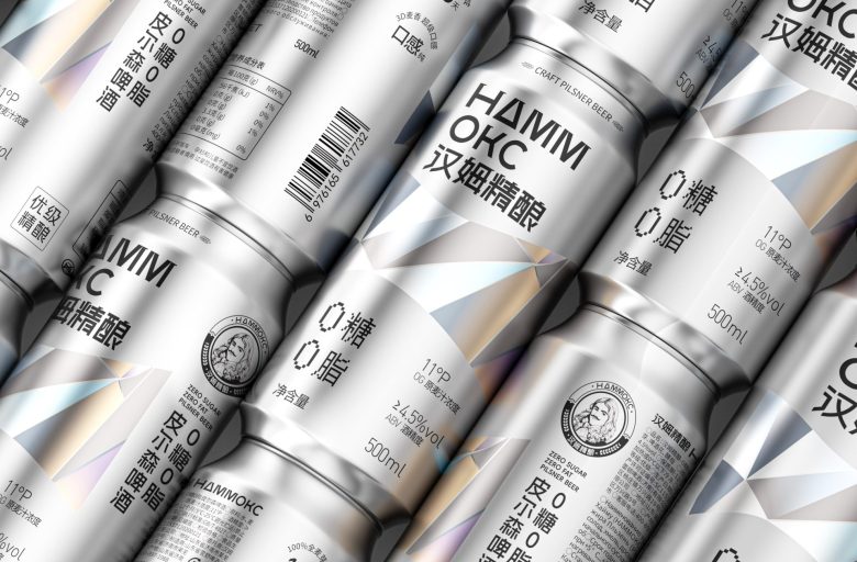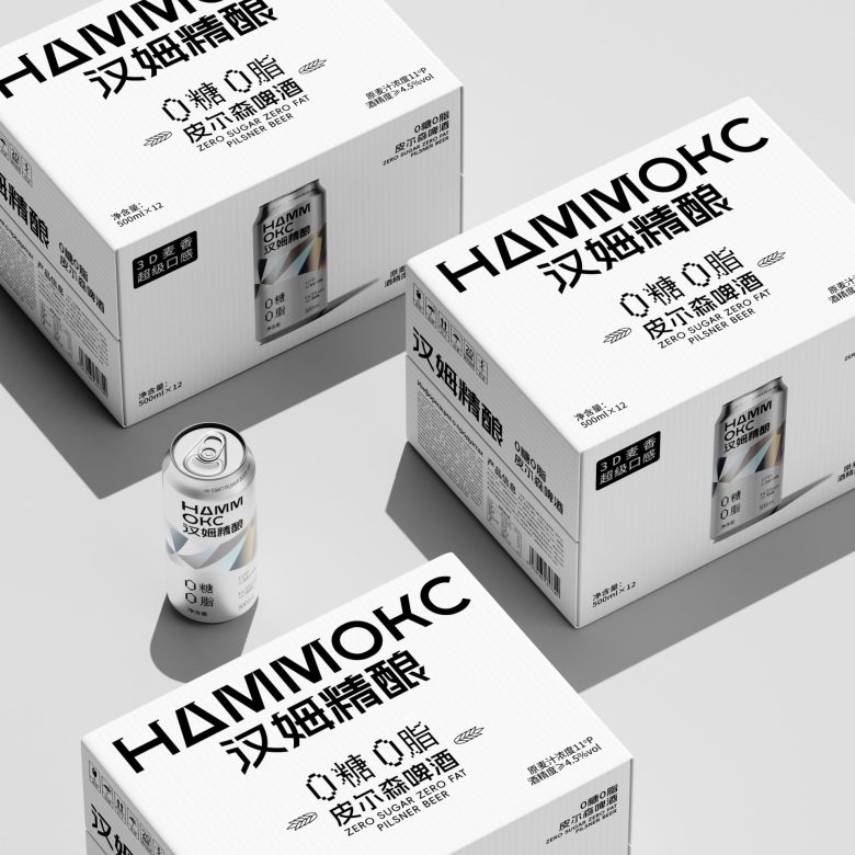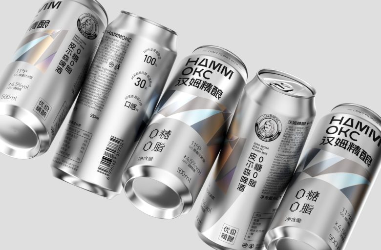 Hammoks (汉姆精酿) leans into the language of light for its Pilsner Beer series, wrapping the can in a fragmented prism motif that scatters across the silver substrate like refracted sunlight. The geometric facets — rendered in soft iridescent blues, golds, and silvers — feel simultaneously futuristic and crystalline, evoking the purity and crispness the brand promises with its zero-sugar, zero-fat positioning. The Cyrillic-meets-Chinese bilingual identity adds an unexpected cultural tension that works in the design’s favor, giving the craft beer a cosmopolitan edge rarely seen in the category. Typography is kept deliberately sparse and bold, letting the metallic canvas do the heavy lifting. It’s a confident, cohesive package that communicates premiumness without shouting — the kind of shelf presence that earns a second look before the first sip.