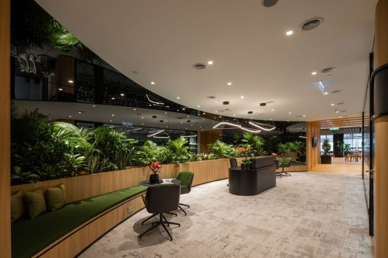 In Kuala Lumpur, the Steven Leach Group crafted the Global Investment Service Offices to foster collaboration and well-being, seamlessly integrating natural elements and flexible spaces within a vibrant, technology-driven environment.